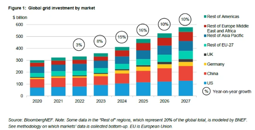 Les dépenses mondiales consacrées aux réseaux électriques devraient franchir pour la première fois la barre des 470 milliards de dollars en 2025, selon de nouvelles analyses publiées par BloombergNEF (BNEF) dans son rapport Grid Investment Outlook 2025.